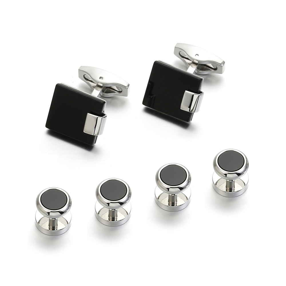 2025 New Style French Shirt Black Onyx Stone 2+4 Cuff Links and Studs Set for Men SC9011
