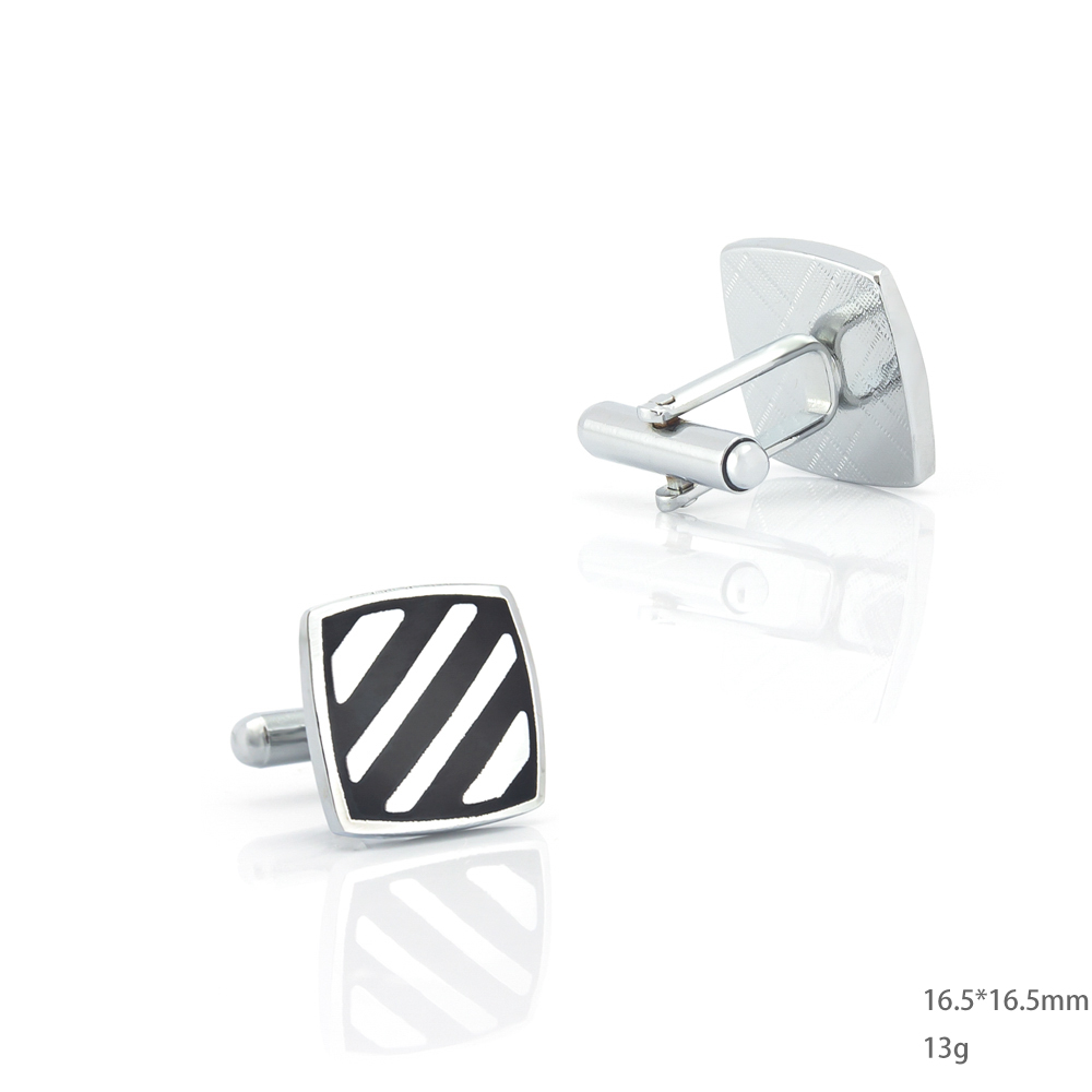 Cufflinks Factory Low Price Black & Silver Striped Twill Drop Oil Square Cufflinks CC-Q079