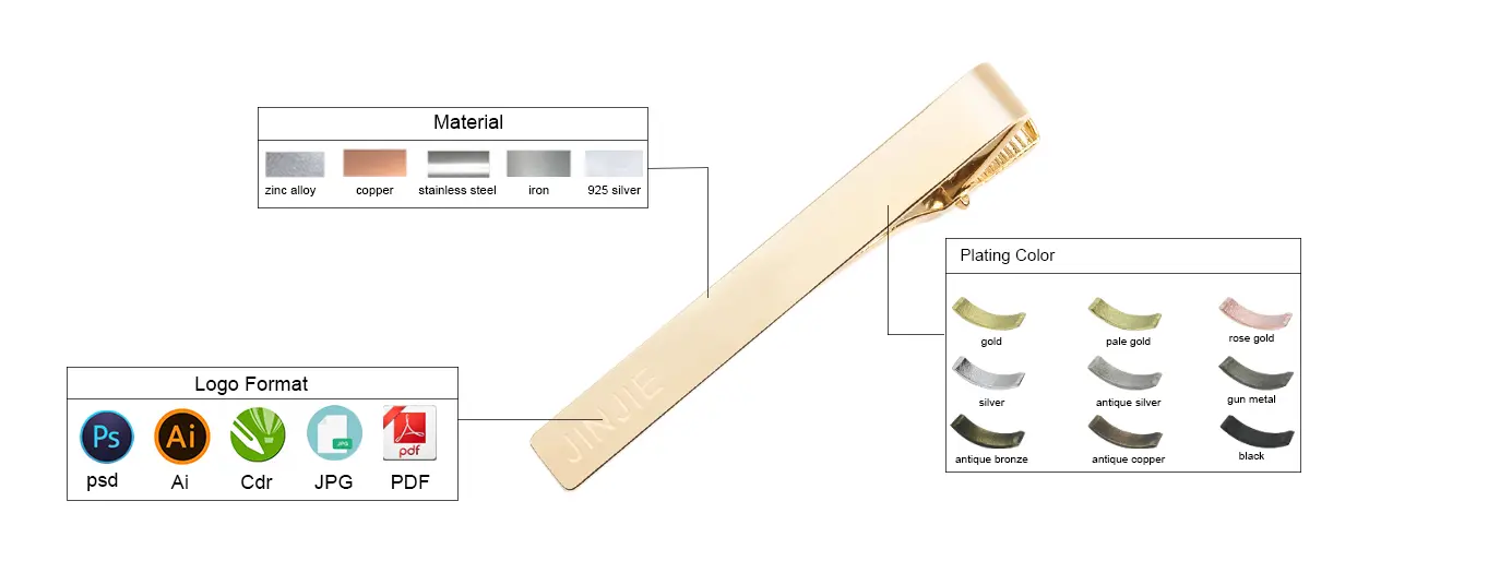 Dress to impress with customized tie bars and tie clips. Our collection of tie bars and clips can be custom personalized to complete your look.
