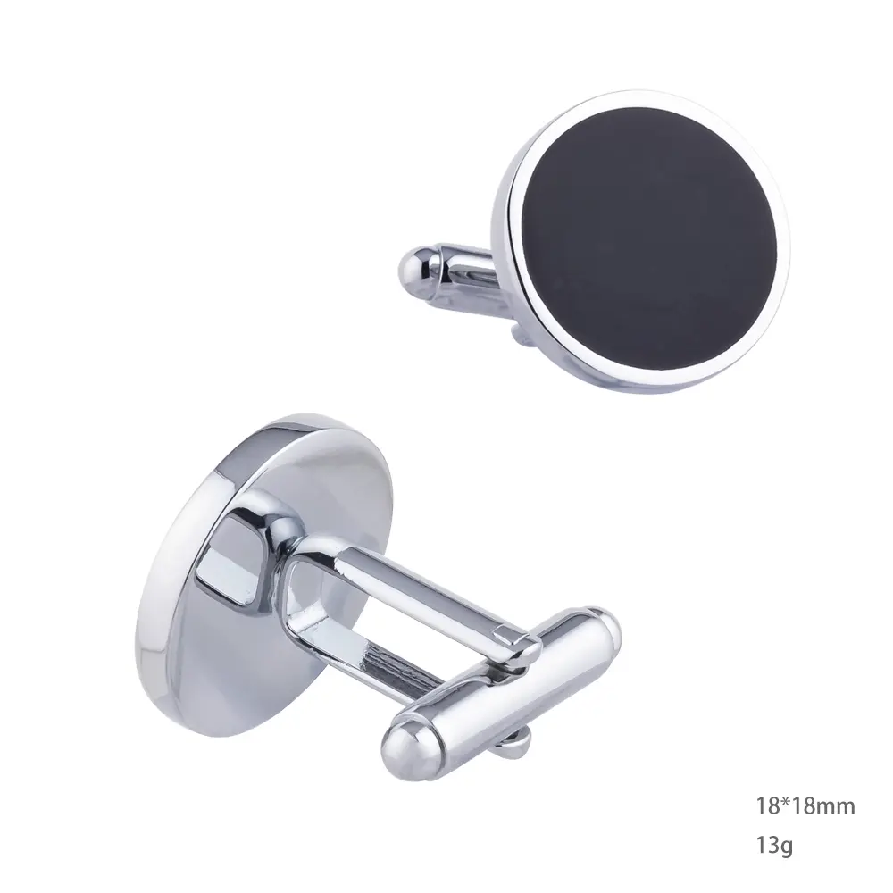 Factory Best Selling Round Shape Simple Black Enamel Cufflinks Customizable Low Price CC-Q015