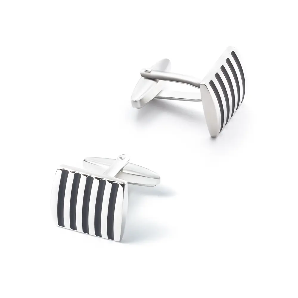 Factory In Stock Classic Black Stripe Silver Cufflinks Mens Business Suit Accessory Wholesale CC0305-S1