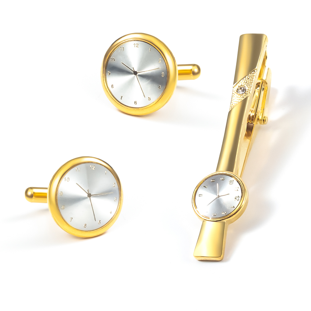 Factory Unique Time Watch Design Men's Business Formal Stylish Gold Plated Cufflinks And Tie Clip Set SA1016