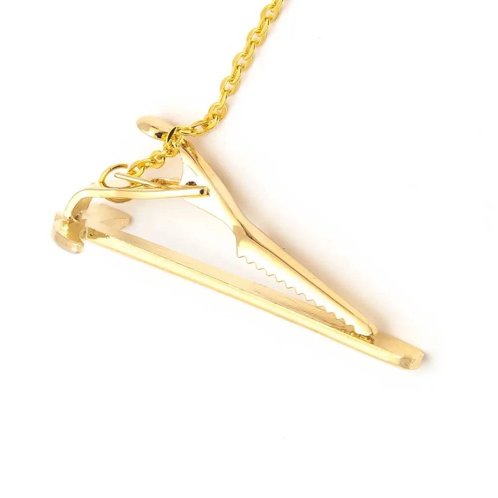 Factory Wholesale New Fashion Luxury Gold Plated Hammer Shape Chain Tie Clip On Necktie TL0033