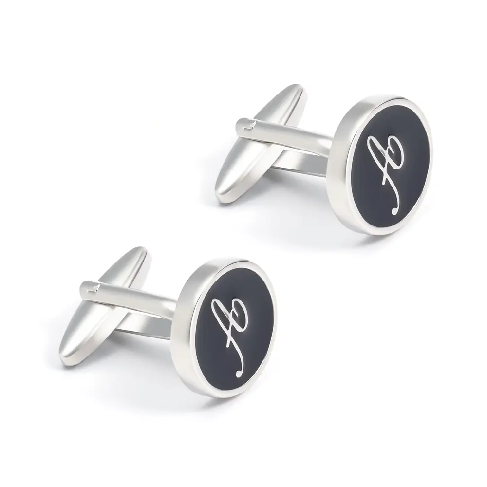 Hot Selling Black Enamel Letter Cuff Links Alphabet A Brass Cufflinks for Men Shirts CC0011-A