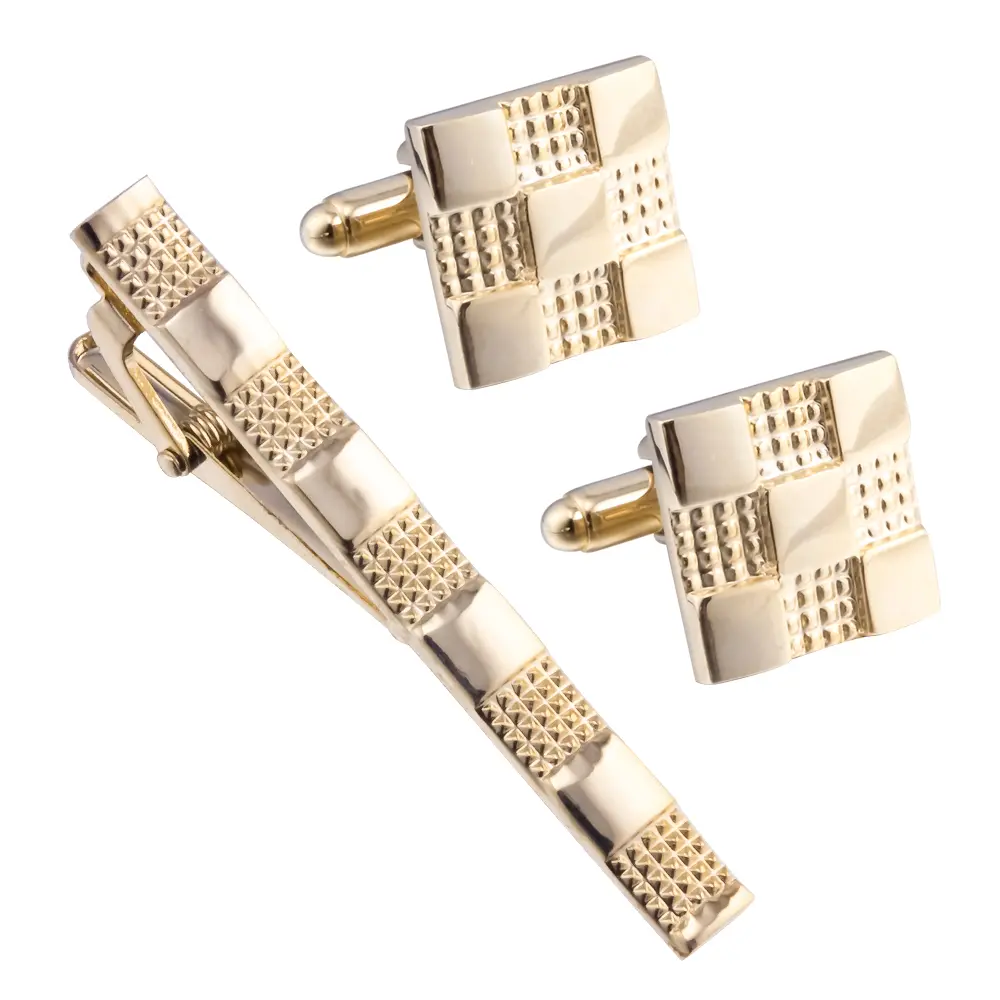 JINJIE Low MOQ Classic Gold Plated Copper Cufflinks and Tie Clip Set for Men Shirt SL0009-G