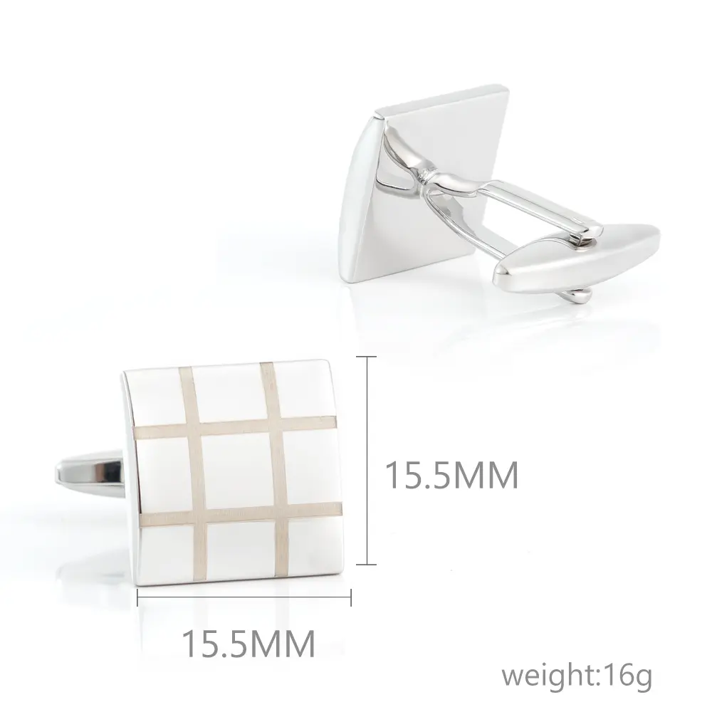 Laser Engraved Logo Stripes Silver Custom Cufflinks For Men's French Shirts Cuff Link CL0180