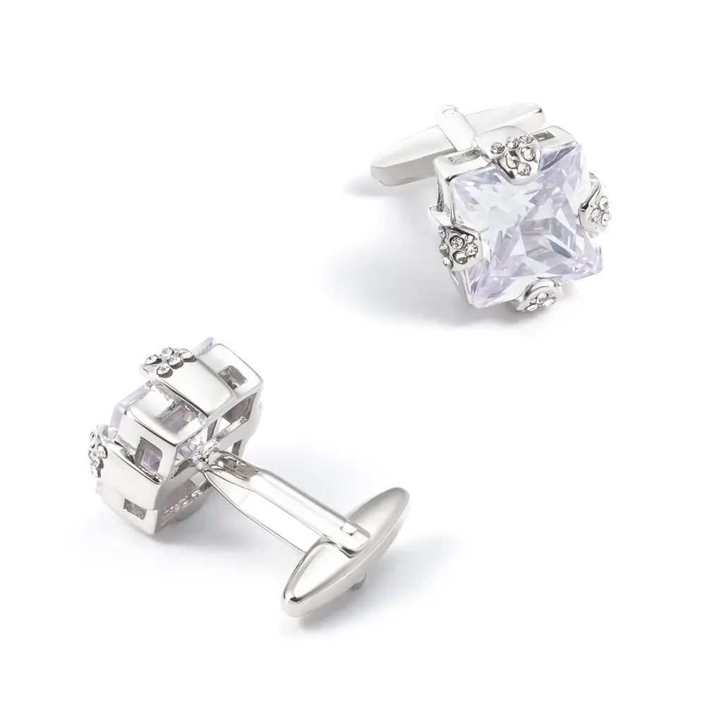 Luxury Zircon Square Silver Color Formal Dress Business Shirt Cufflinks Men Wedding Gifts CS0007-W