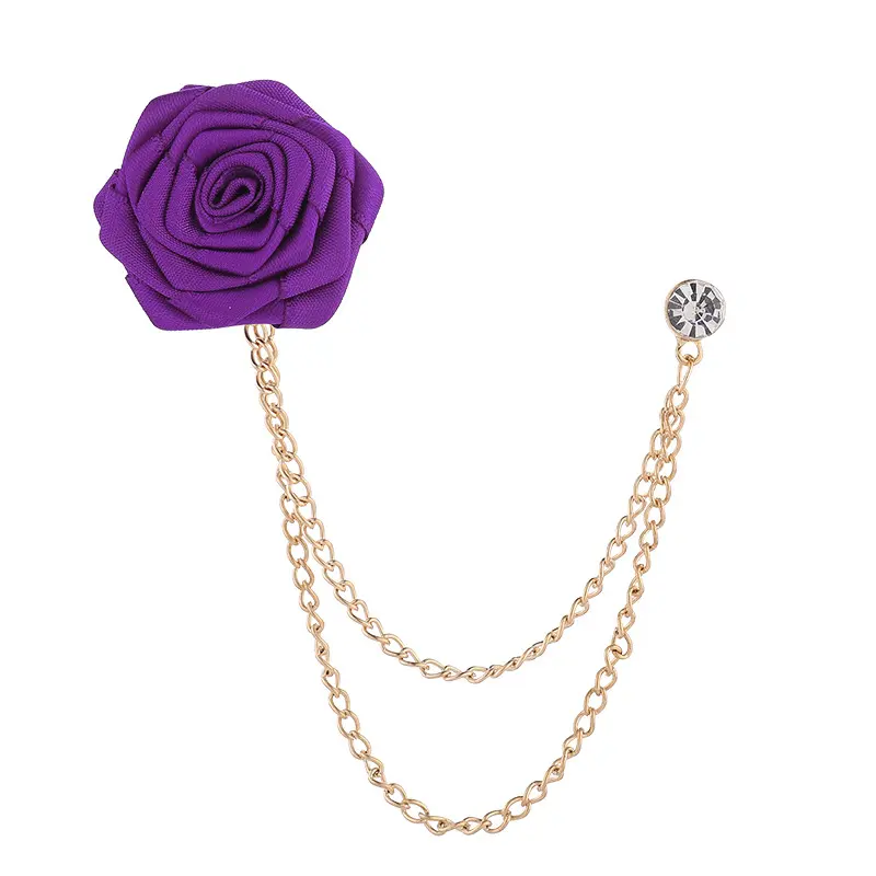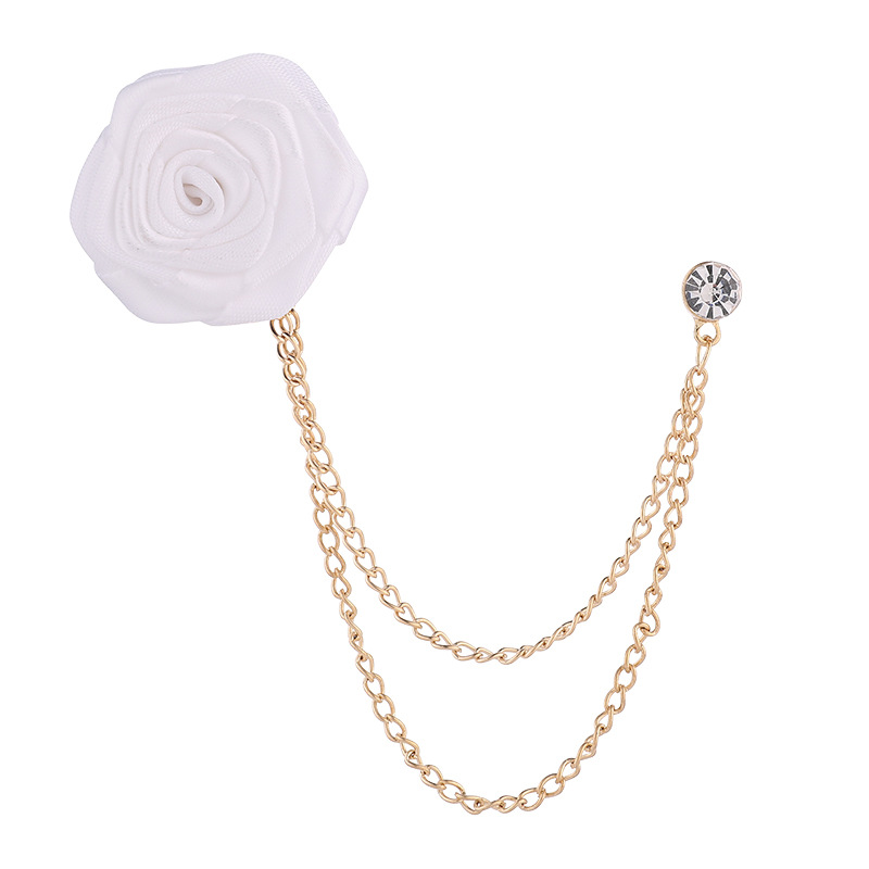 Personality Men's Suit Accessory Fabric Rose Flower Brooch with Tassel Chain BC-1035