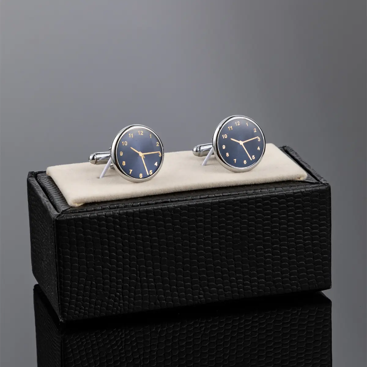 Silver Plated Round Blue Watch Clock Design Cuff links Gentleman Wedding Gifts