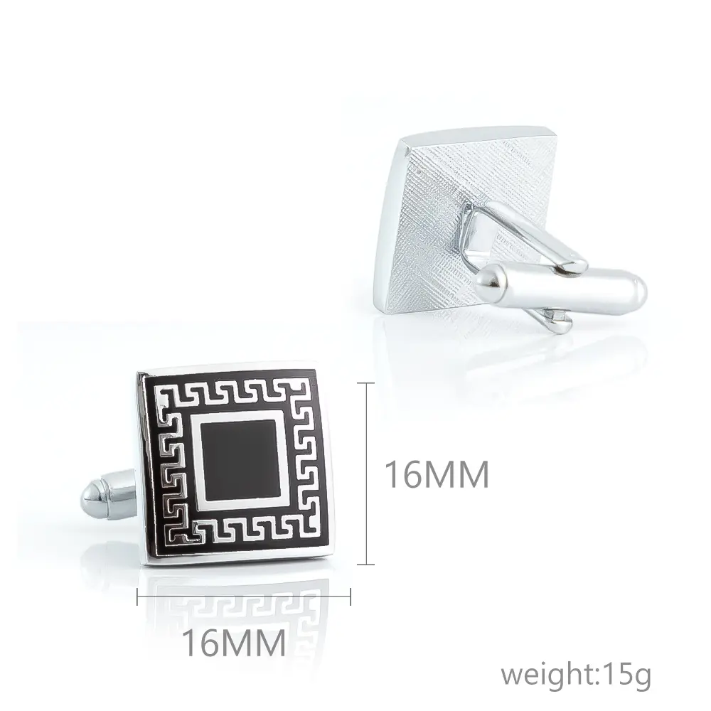 Top Selling Amazon Gentleman Business Classic Silver & Black Square Sleeve Cufflinks Wholesale CC-Q054