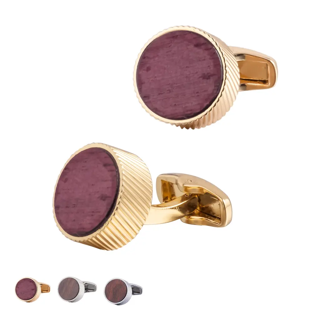 Vintage Round Solid Wooden Cufflinks Men's French Red Wood Cuff Links Shirt Buttons