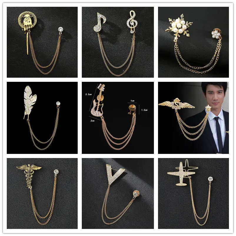 Wholesale Hot Selling Stylish Men's Suit Accessories Eagle Brooch with Chain BC-1016