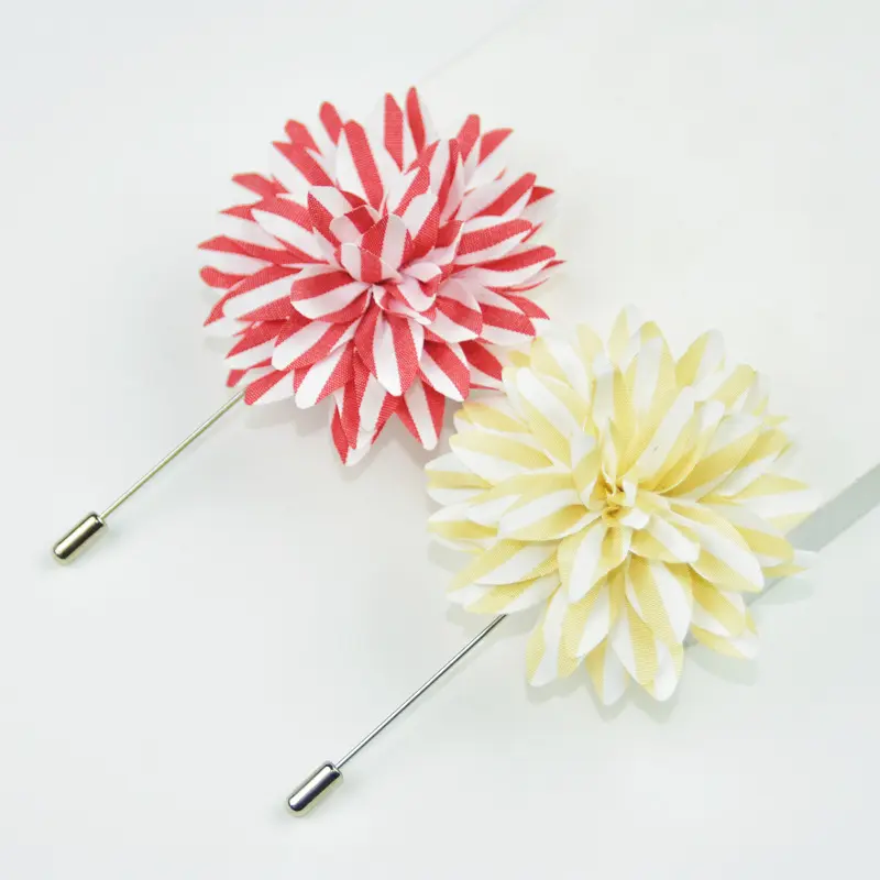 Wholesale Polka Dot Striped Fabric Fashion Men's Handmade Flower Pin Brooch BC-1082