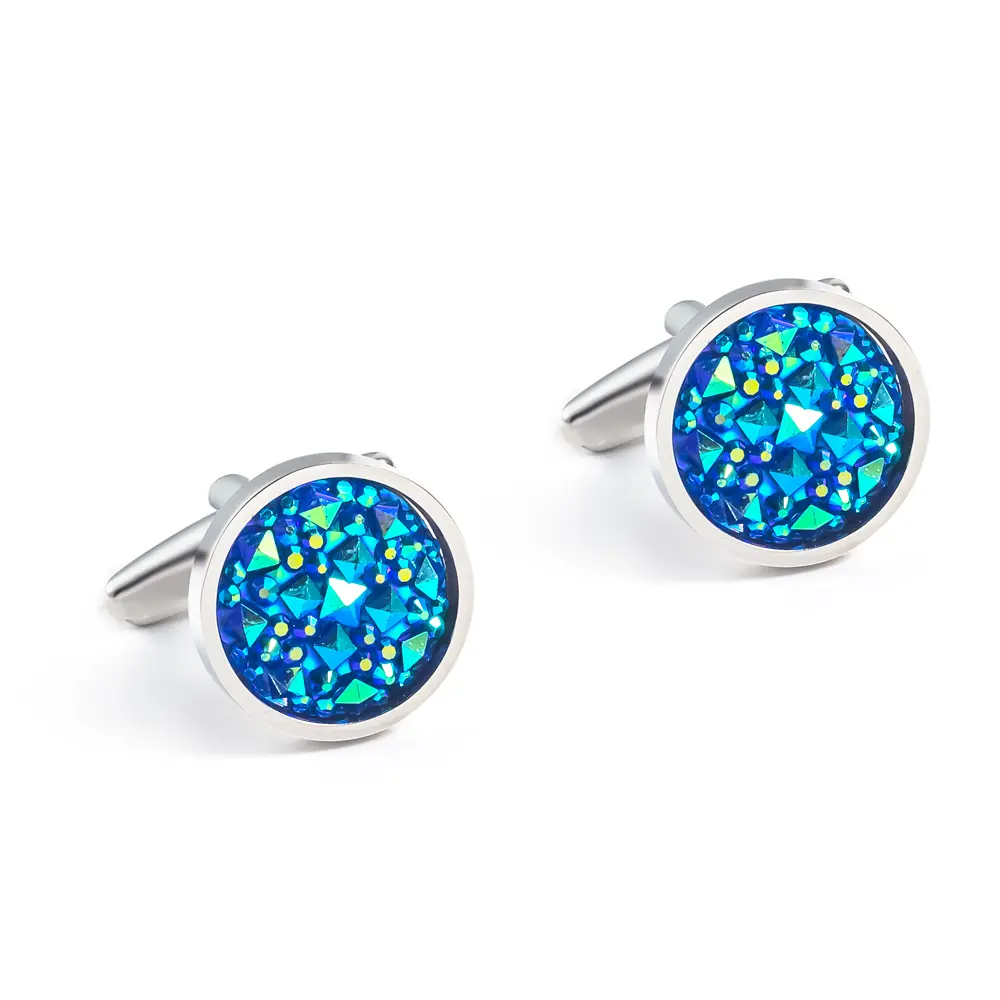 Wholesale Silver & Blue Gemstone Elegant Cufflinks French Suit Shirts Buttons CS0098