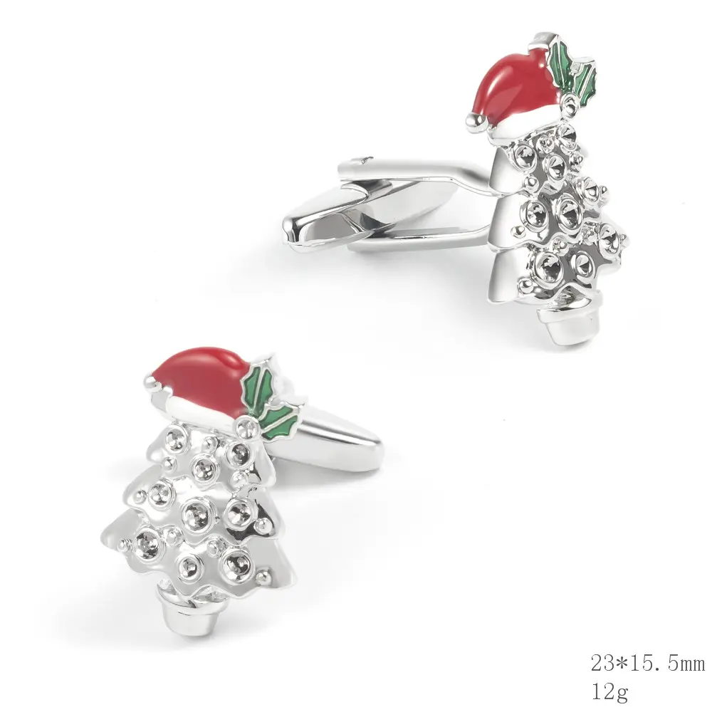 Wholsale Custom DIY Red & Silver Christmas Tree Cufflinks Low Price CC0193